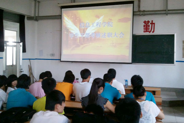 6月27日下午,信息工程学院举行学生干部考核述职大会。信息工程学院主要负责同志、分管学生工作负责同志、全体班主任及2010级和2011级学生干部参加了会议。