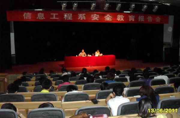 为加强学生安全防范意识, 进一步提高消防安全知识,6月13日下午,信息工程系在学院报告厅举办安全教育报告会。系党支部负责人、分管学生负责人、辅导员(班主任)及2009级、2010全体级学生参加了此次报告会。