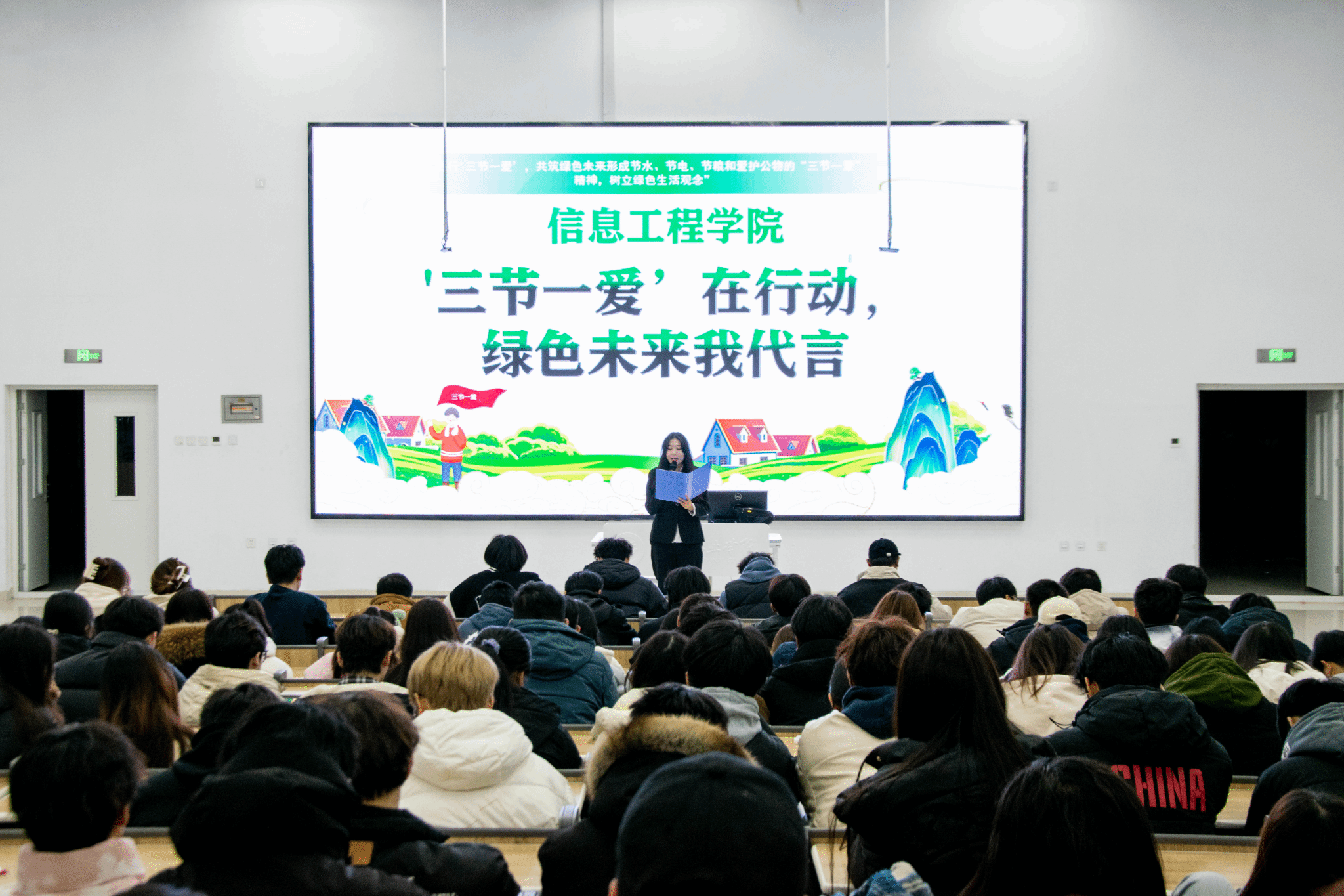 此次演讲比赛的顺利开展,提升了同学们的勤俭节约意识,在校园内掀起了一股践行“三节一爱”的热潮。未来,信息工程学院将继续加强传统美德教育,引导信息学子继续发扬勤俭节约等传统美德,打造绿色文明型校园,为建设美丽中国贡献积极力量。(张斌 赵争光供稿)
