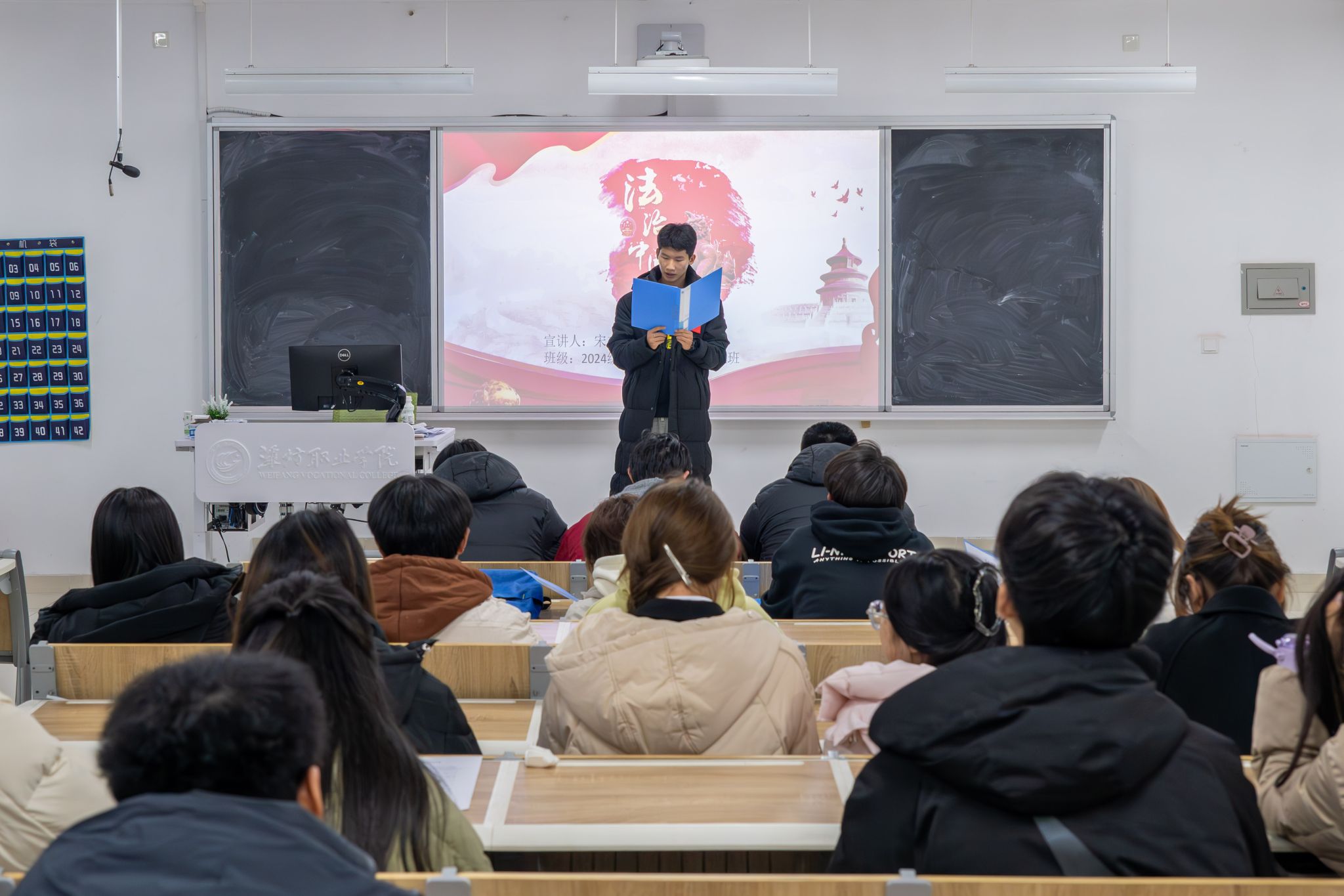 为积极响应山东省法治教育宣传月号召,增强学院法治教育宣传,全面推动学院文明修身工程建设,加深同学们对宪法精神的理解与认同,营造“尊法学法、守法用法”的校园风尚。信息工程学院于12月25日组织开展宪法诵读比赛。