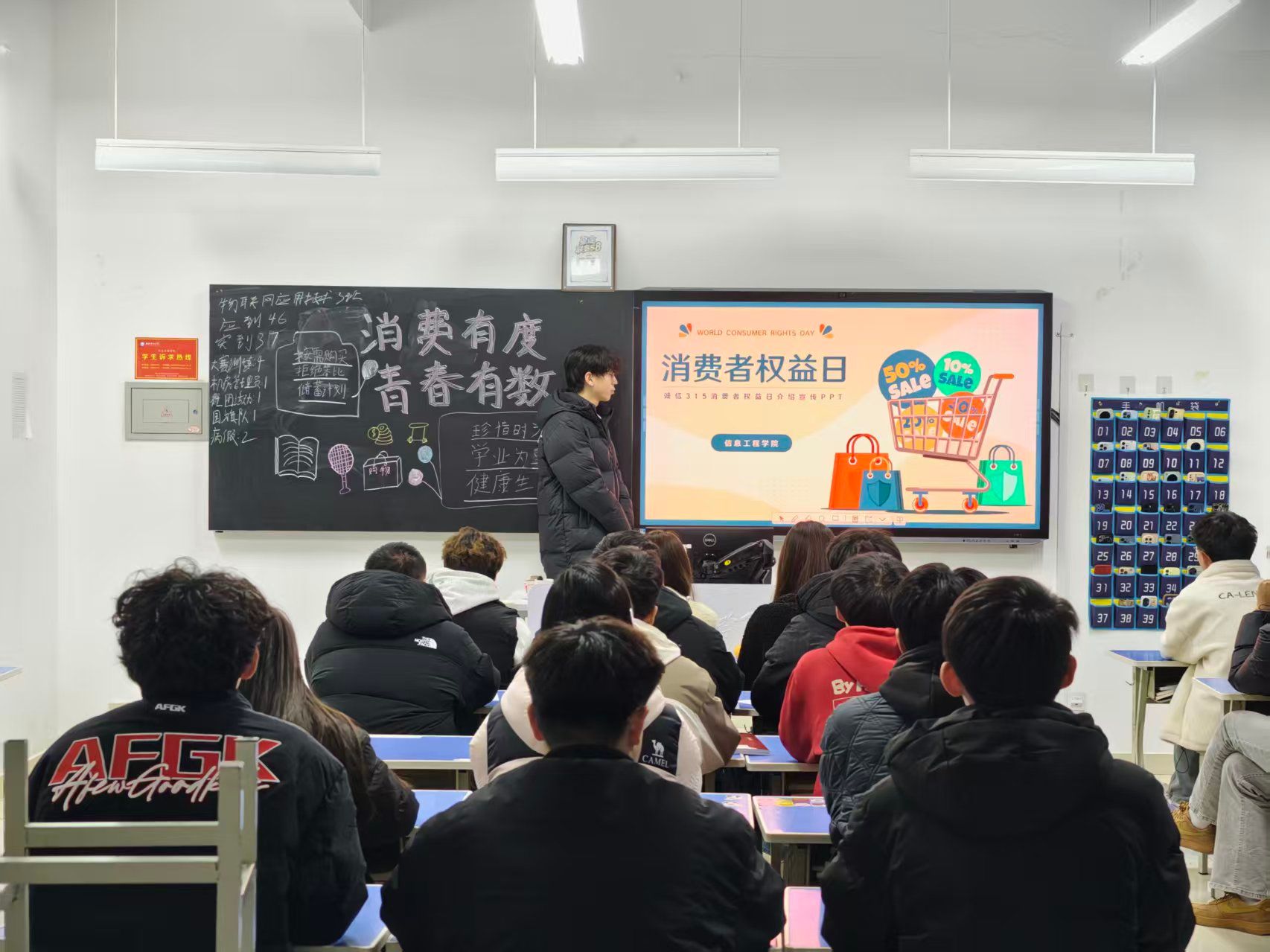活动中,各班辅导员老师和学生干部围绕“校园贷防范”“网络购物维权”等主题展开深度宣讲,结合校园周边及网络中的真实典型案例,讲解各类消费陷阱的识别技巧与维权要点,分享实用的防骗小知识,呼吁大家在消费过程中保持清醒、互相监督、共同抵制不良行为。