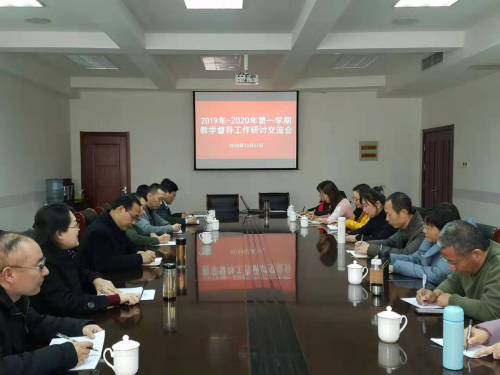 2019年12月27日,学院教学督导工作研讨交流会在奎文校区第二会议室召开。学院领导赵君堂,学院教学督导室全体成员以及教务处相关人员参加会议,会议由教务处主要负责同志主持。