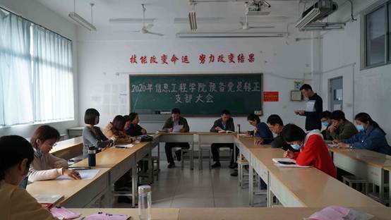 10月21日上午9点,信息工程学院党支部在惠泽楼2B406召开预备党员转正大会。党总支书记王新国,支部党员,培养联系人以及4名预备党员参加了本次会议,大会由党支部书记张斌主持。
