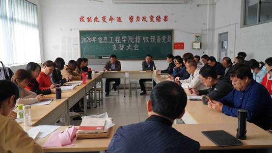 10月21日上午9点30分,信息工程学院学生党支部在惠泽2B406召开了接收预备党员大会,党总支书记王新国,支部党员,培养联系人以及32名入党积极分子参加了本次会议,大会由党支部书记张斌主持。