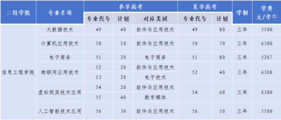 2024年信息工程学院2024年单独招生、综合评价招生招生计划表