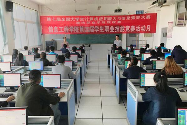 信息工程学院以”弘扬工匠精神,培养技能精英”为主题,先后组织了计算机应用能力与信息素养、高校校园网攻击防御、大学生软件设计、多媒体设计、物联网应用技术、电子商务、计算机组装等7个项目比赛,共有21位指导老师和14位裁判员参加大赛指导和执裁,选出了245名学生参加决赛。选手们严格遵守大赛纪律,以规范的操作、积极的状态充分展示了良好的职业素养和专业技能。竞赛最终评选出一等奖12名、二等奖37名、 三等奖60名。
