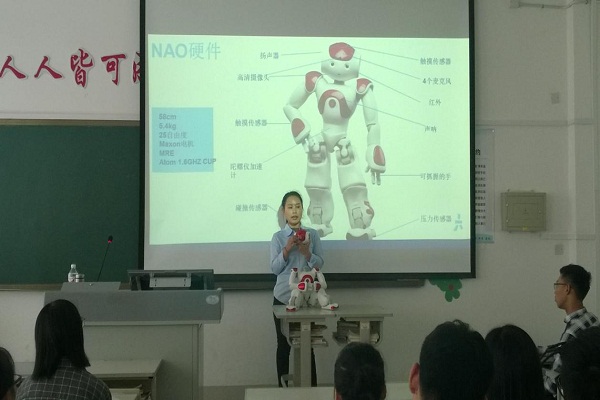 5月18日下午,信息工程学院邀请日本软银机器人公司(SoftBankRobotics)王阿乔经理等组成的团队举行报告会,为计算机应用技术专业师生进行精彩的NAO机器人演示和报告。