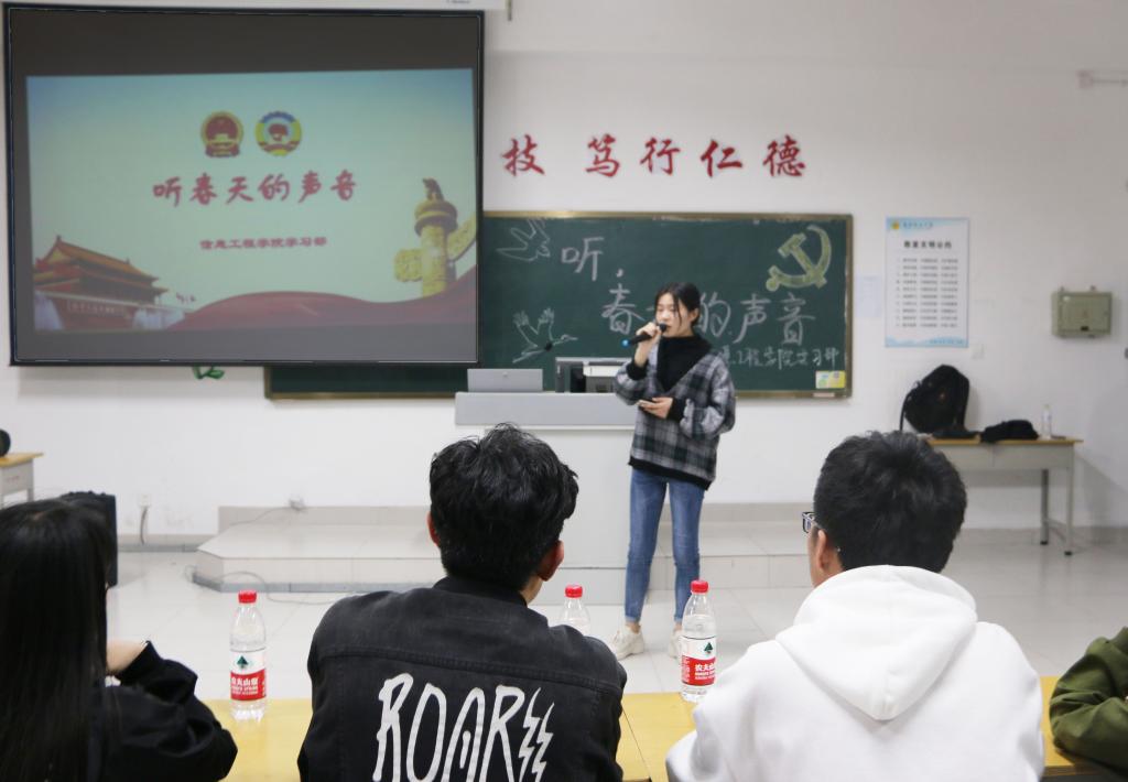 为深入学习两会精神,弘扬社会主义核心价值观,4月2日,信息工程学院在惠泽2号楼B412教室举办“聚焦两会新时代,助力双创新未来”两会主题活动。