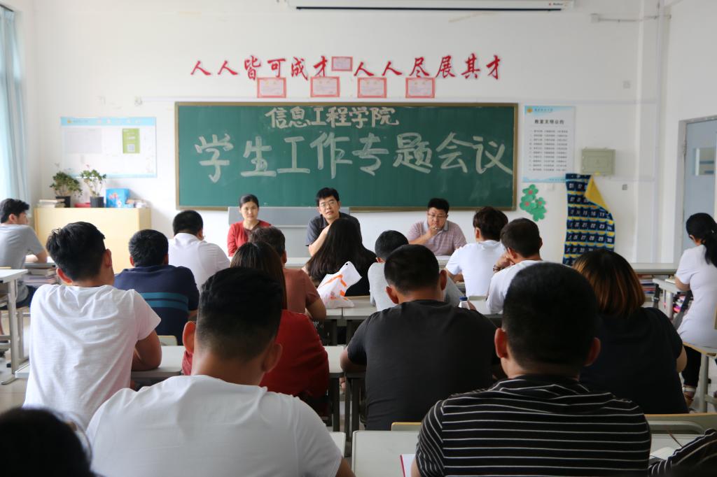 信息工程学院于6月14日中午在惠泽2号楼B区408教室召开学生实习前教育专题会议,启动毕业季系列活动。信息工程学院负责人、分管学生工作负责人、辅导员和2016级各班班主任、班长、团支书参加了本次活动。