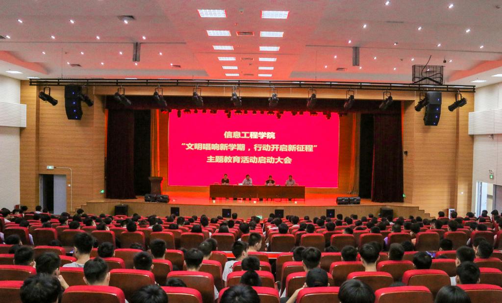 为了加强学生思想道德和文明礼仪教育,营造文明、和谐、积极向上的校园文化氛围,9月5日下午,信息工程学院在图书馆报告厅举行了“文明唱响新学期,行动开启新征程”主题教育活动启动大会,信息工程学院负责人、辅导员(班主任)及2016级、2017级五年一贯制学生参加了此次活动。