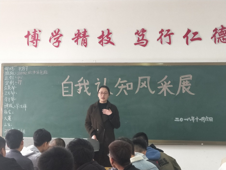 为了深化产教融合、加强大学生职业素养建设,11月6日上午山东师创软件实训学院企业教师带领2018级安博软件外包班进行了一场“自我认知的风采展”活动。信息工程学院负责人和企业负责人文素养的教师、2018级共建专业学生参加了本次活动。