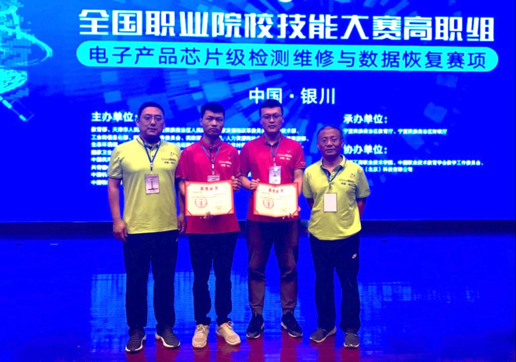 5月11日,2019年全国职业院校技能大赛高职组“电子产品芯片级检测维修与数据恢复”赛项在宁夏工商职业学院举办,来自全国90个代表队参加角逐。我院学生邓洪辉、崔闯同学组成的代表队获得团体二等奖。