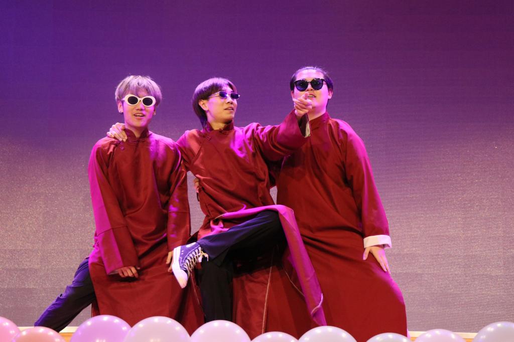 晚会分为“绚烂青春、你我同行”、“锦瑟华年、砥砺奋进”、“以国为家、以梦前行”三个篇章,汇集歌舞、小品、相声、朗诵、舞台剧等艺术形式,节目精彩纷呈。舞龙表演在激情洋溢的战鼓声点燃了晚会序幕,开场舞《大团圆》开启了元旦联欢的华美乐章。歌曲《梁叶》、《我要》在同学们的深情演唱下,让人心醉神迷,现场欢呼声此起彼伏。器乐表演《金蛇狂舞》、《赛马》,古筝与二胡相互交织,音浪错落有致,旋律优美动听。现代舞《星光闪耀》、《桃花和你》优美的舞姿,飞扬的旋律,展现出一幅幅欢快青春的画面,描绘出一道道绚丽动人的风景,场上场下气氛热烈火爆。一曲《我爱你中国》活力动感的音乐为观众们带来了燃烧的激情,将晚会气氛推向了高潮。舞台剧《人生》创造性地融入了舞美音乐、让人耳目一新,发人深思。曼妙多姿的舞蹈《茉莉花》充满了浓郁的民族特色,歌伴舞《不忘初心》深情歌颂我们党带领人民在民族复兴道路上披荆斩棘的历程和取得的伟大成就,将现场气氛推向了最高潮,.....整场晚会气氛热烈,掌声不断。伴随着饱满深情的大合唱《我和我的中国》,信息工程学院“初心永在,放歌祖国”元旦晚会在歌颂祖国和对学院的美好祝愿中圆满落幕。