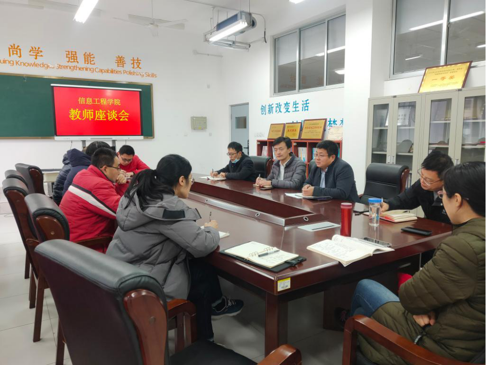 为了解本学期以来教师教学情况和学生学习情况,促进教学相长,进一步提高教学质量,根据学院教学处期中教学检查的要求,12月3日下午和12月7日下午,信息工程学院在惠泽2号楼B410会议室分别举行以“聚焦课堂•教学相长”为主题的教师、学生座谈交流活动。教务处相关负责同志、信息工程学院相关负责同志,以及信息工程学院师生代表参加了本次活动。