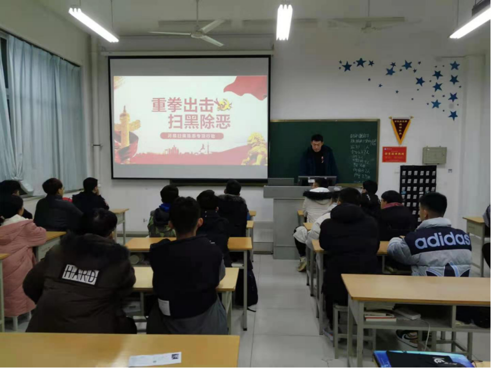 1215日晚自习,信息工程学院组织专题班会,通过阅读《致广大市民朋友的一封信》和介绍自2018年以来,在为期三年的扫黑除恶行动中,展示较为典型的案例与大案、难案,宣传相关的法律法规,强化学生的法制意识,加强学生的自我保护。通过此次班会的开展,激发了同学们内心的正义感、社会责任感,夯实了扫黑除恶这个学生群体基础,使正确的人生观、价值观、世界观深入人心,同学们纷纷表达出对国家下狠手、下狠劲儿的做法积极靠拢,并继续向好向善。