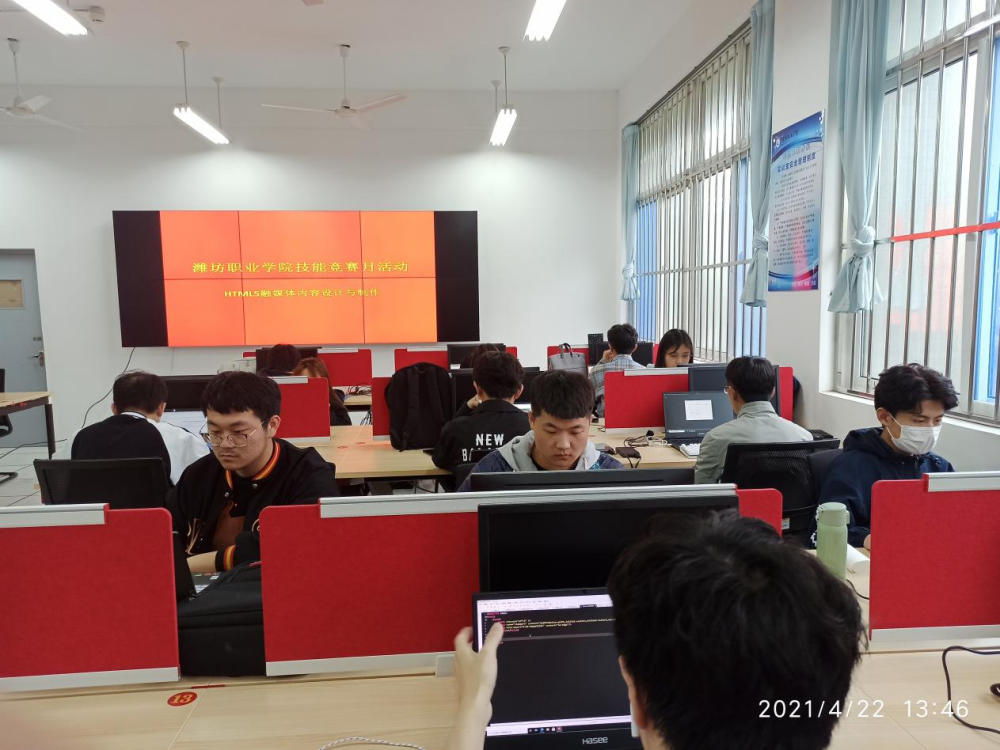 为适应新一代信息技术发展,培养学生在融媒体环境下使用HTML5技术制作交互设计作品的能力,4月22日下午,信息工程学院在惠泽2号楼B区129实训室举办了第七届“学生职业技能竞赛月”HTML5融媒体内容制作技能竞赛。
