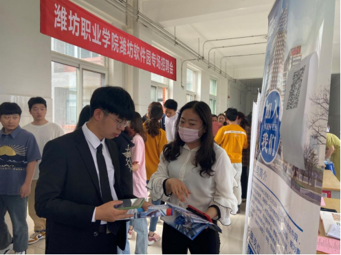 5月20日下午,信息工程学院在惠泽2号楼B座四楼举行了2019级学生实习就业潍坊软件园企业专场招聘会,18家软件园入驻企业参加本次招聘。