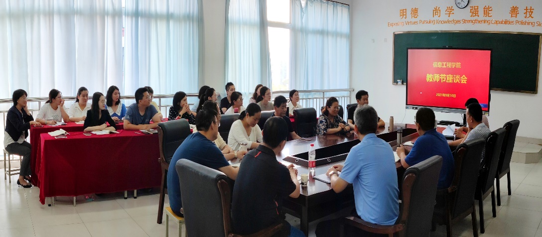 9月10日下午,在全国第37个教师节到来之际,信息工程学院在惠泽2号楼B410举办了“新老教师传帮带 薪火相传共成长”教师节座谈会,信息工程学院领导班子、骨干教师代表和近五年入职青年教师参加了活动。