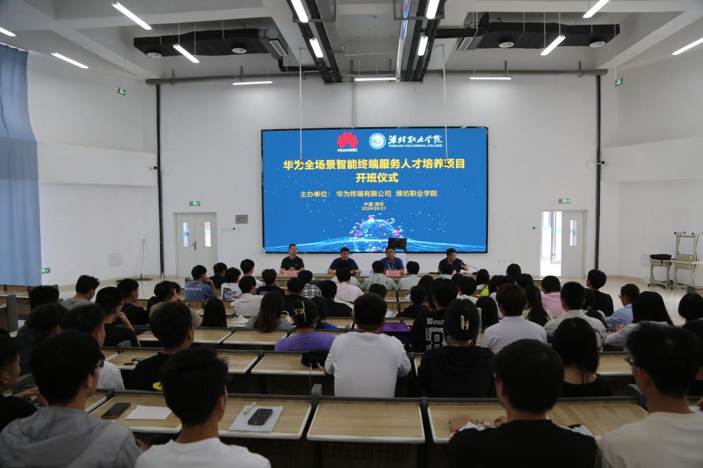 5月31日下午,信息工程学院在智泽1号楼A117举行华为全场景智能终端服务人才培养项目开班仪式。信息工程学院主要负责人、信息工程学院教学负责人、华为终端有限公司山东业务部校企合作负责人刘洺羽、潍坊景致通讯技术有限公司总经理朱学东参加了此次开班仪式。