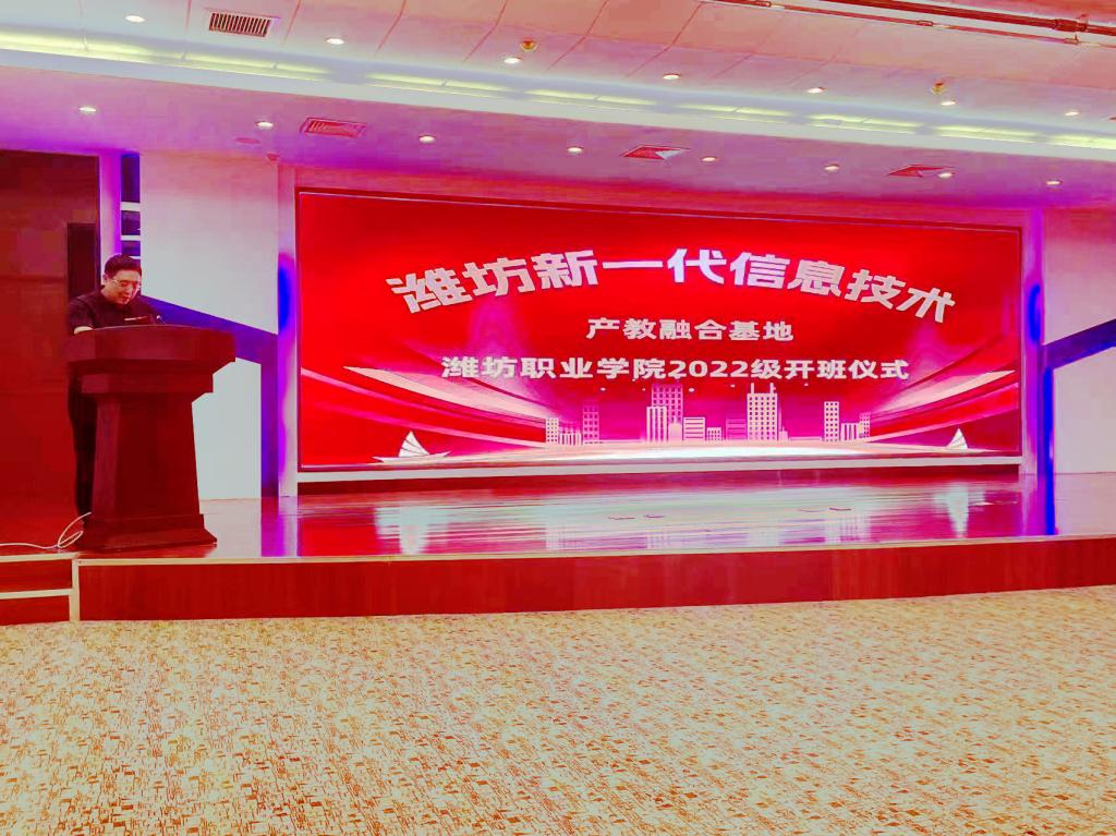 潍坊软件园王克峰副书记热情接待了信息工程学院一行,对我院到潍坊软件园开展实训工作表示热烈欢迎,赞扬了我院对学生实训工作的重视,希望学生实训后能在园区就业,并表示将全力提供优质的实习、就业和创业环境;信息工程学院主要负责人对潍坊软件园和山东桥通天下网络科技有限公司提供的优越实训环境和锻炼机会表示感谢,并希望进一步加深与软件园合作;随后,双方就未来规划及合作进行了深入坦诚的交流。座谈会结束后,信息工程学院一行参加了学生综合实训开班仪式,在开班仪式上信息工程学院主要负责人发表讲话,对学生提出了三点希望,一是实训期间始终谨记安全第一,同时要严守实训纪律,服从实训指导老师的要求和安排,接受校企双重管理;二是要认识到专业实训的重要性,通过实训在实际项目中积累经验、锻炼专业能力,发展职业素养和人际交往能力,为高质量就业打牢基础;三是实训是个人成长的重要机会,也是实现理想的桥梁,在实训过程中同学们要充分利用和珍惜这次机会,不断追求卓越,在实践中成长。