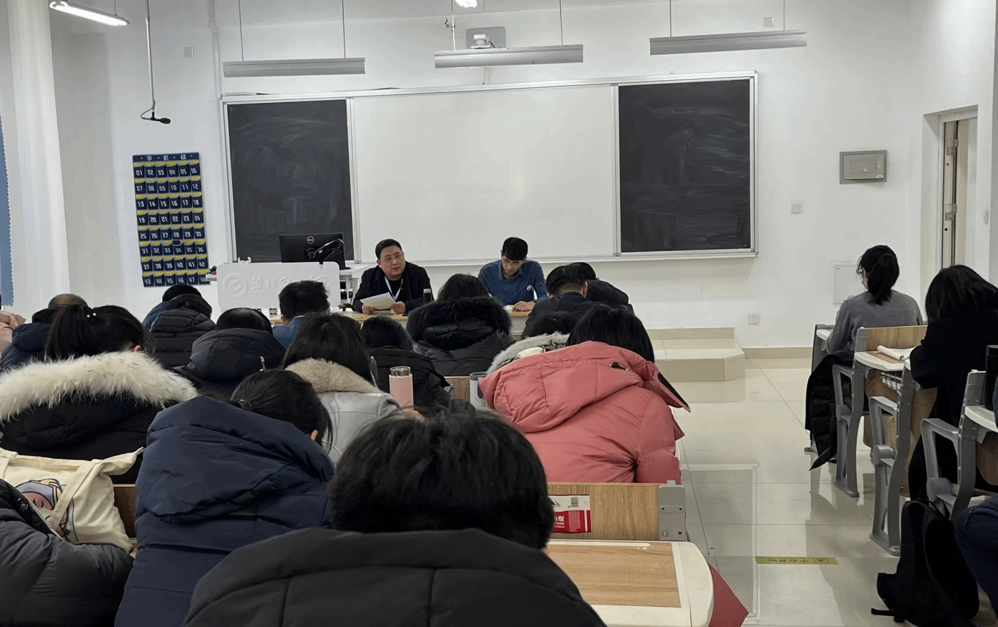 12月26日下午,信息工程学院在智泽1号楼A215,组织召开全体人员会议,传达学习学院申报“新双高”暨争办职教本科院校工作会议精神,并部署贯彻落实工作。