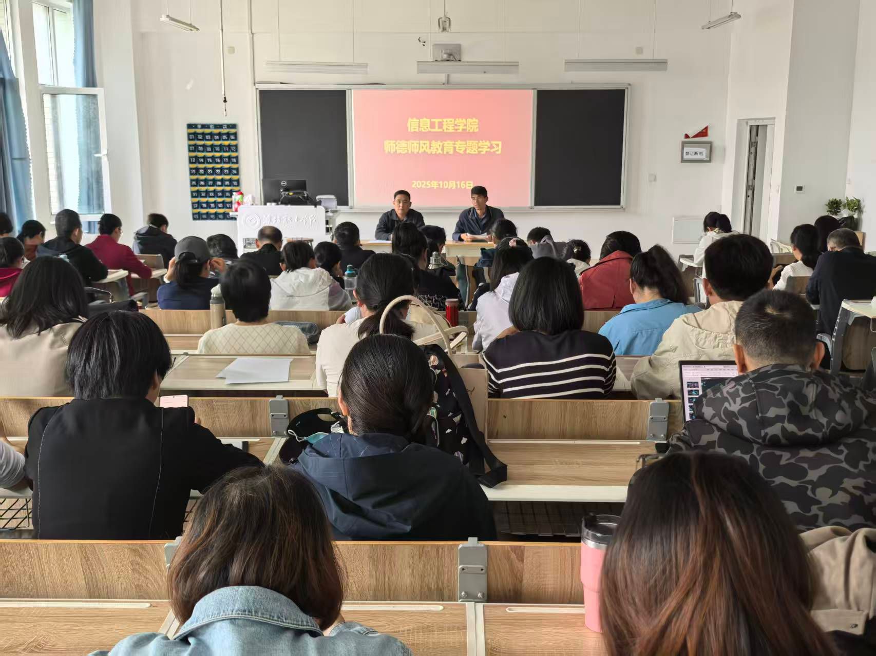 为深入贯彻落实学院党委《2025年师德建设教育月活动实施方案》精神,大力弘扬教育家精神,建设高素质专业化教师队伍,9月1日至10月16日,信息工程学院精心组织、周密部署,开展了一系列师德师风建设活动,取得了显著成效。活动期间,信息工程学院组织全体教师集体签署了《潍坊职业学院师德承诺书》,引导教师牢记育人初心,恪守职业准则,自觉践行“四个相统一”,争做“四有”好老师;结合典型案例开展了师德警示教育和“以案说规”活动,通过剖析反面教材,引导教师深刻反思、引以为戒,时刻绷紧师德师风之弦,自觉维护教师职业形象;组织开展了专题学习,集中学习了习近平总书记给全国特岗教师代表的回信、《新时代高校教师职业行为十项准则》《山东省教育厅提醒函》精神及学院相关师德制度文件,帮助教师全面理解和准确把握师德规范要求,做到内化于心、外化于行。同时,信息工程学院积极发挥先进典型的示范引领作用,动员广大教师积极参与院级“最美教师”评选活动,鼓励教师们在参与评选中对标先进、反思自身,将评选过程转化为一次生动的师德集体教育。此次系列活动将思想引领、制度学习、案例警示与典型示范有机结合,有效提升了教师的职业道德素养和育人能力。下一步,学院将持续巩固活动成果,完善师德建设长效机制,引导全体教师以更加饱满的热情和扎实的作风投身教育教学工作,为学院“建本升高”目标贡献坚实力量。(马佳佳 刘迪迪供稿)
