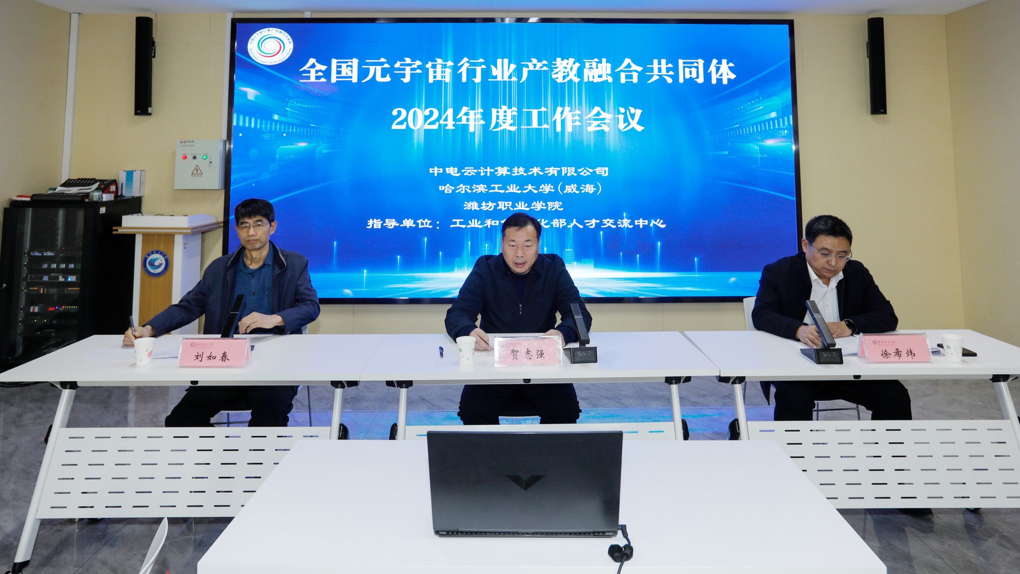 12月27日上午,全国元宇宙行业产教融合共同体2024年度工作会议在潍坊职业学院滨海校区召开,分会场采取线上形式参与会议。工信部人才交流中心人才研究处副处长李利利、中电云计算技术有限公司元宇宙产品线副总裁赵尔迪、潍坊职业学院党委副书记贺志强、全国元宇宙产教融合共同体成员单位代表、潍坊职业学院科技处(产学研合作中心)、信息工程学院负责同志及全体教师共计170余人参加会议。