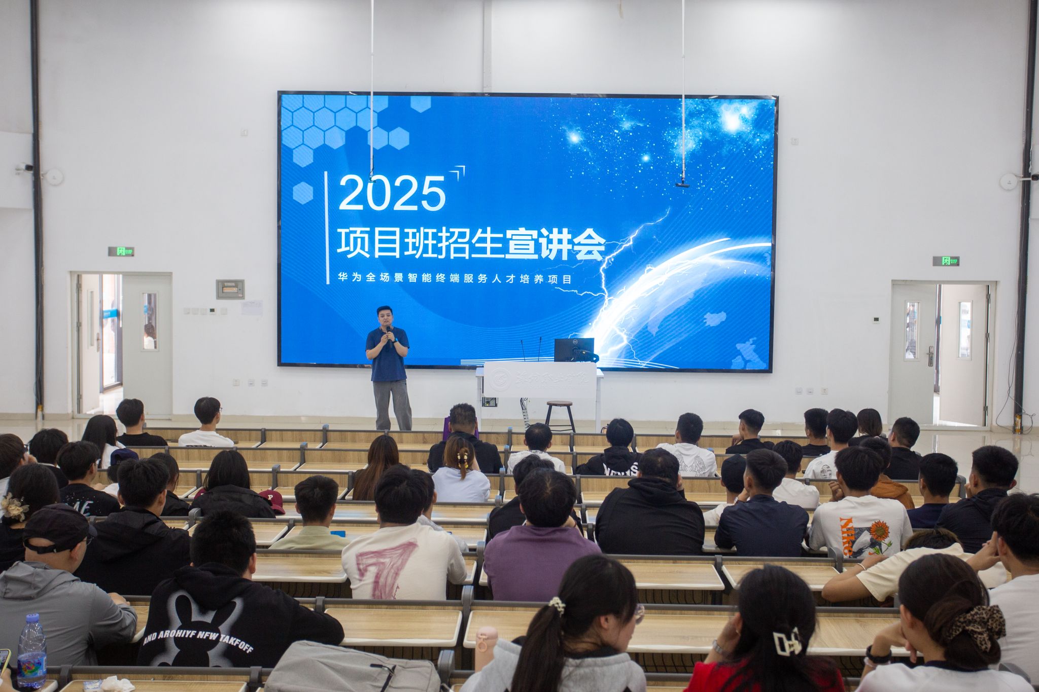 5月13日下午,2025年华为全场景智能终端服务人才订单班招生宣讲会在滨海校区南区智泽1号楼A117召开,华为终端有限公司山东区域校区合作负责人刘洺羽、华为核心服务供应商潍坊景致通信技术有限公司总经理朱学东、信息工程学院相关科室人员及预报名的150余名学生参加宣讲。宣讲会上,刘洺羽做项目介绍,他从华为企业文化、发展规模及现状、项目班岗位设置、成长通道、薪酬待遇等方面作了详细介绍,并重点强调了华为全场景智能终端服务岗位职责与培养计划。现场气氛活跃,与会学生围绕后期培训安排、实习时间及实习管理等积极提问,刘洺羽一一给予详尽解答。本周华为终端有限公司将对预报名学生进行测试选拔,订单班预计于5月底开班。自2022年5月起,我院与华为终端有限公司开启战略合作,作为山东省高职院校中唯一的合作院校,信息工程学院高站位谋划、高标准推进项目,积极整合优质资源,构建特色课程体系,打造高水平实训基地。下步,我院将继续深化校企协同育人,全力培养适应全场景智能终端服务行业需求的优质人才,为更多学生创造华为生态实习与就业契机,提高2026届毕业生实习就业质量。(赵珍 黄静供稿)