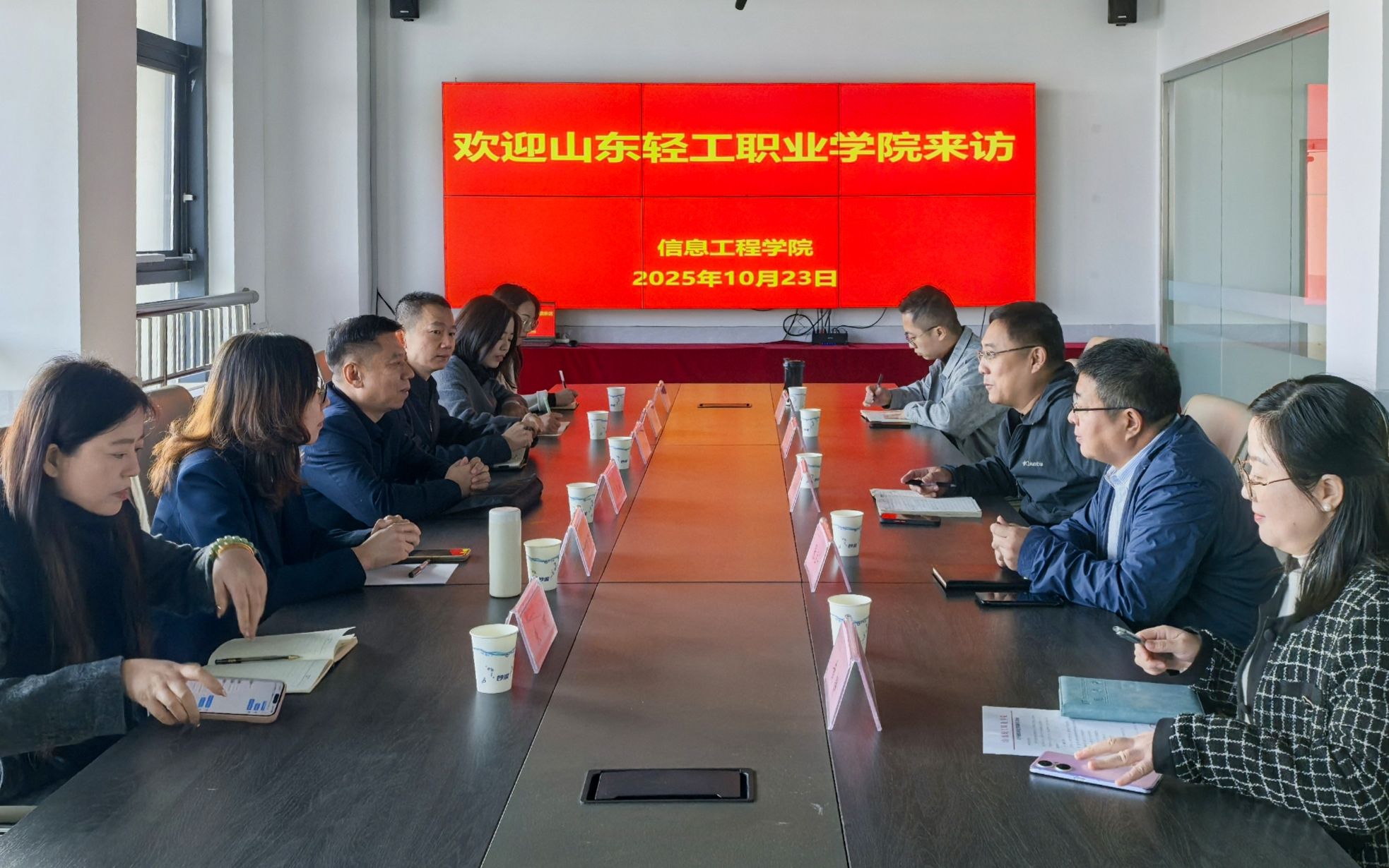10月23日上午,山东轻工职业学院信息工程系主任、嘉环ICT产业学院院长孟英杰等一行6人到信息工程学院考察交流。信息工程学院主要负责人、分管教学负责人及相关科室人员参加座谈活动。信息工程学院主要负责人对孟英杰一行的到来表示热烈欢迎,并详细介绍了信息工程学院专业(群)建设、师资队伍、人才培养、社会服务等方面的情况。孟英杰对信息工程学院取得的成绩表示高度赞赏,并介绍了山东轻工职业学院信息工程系的专业建设和发展情况。随后,双方重点围绕教学改革、工作室建设、社会服务等方面进行了深入探讨与交流。会后,座谈会人员一同参观了信息工程学院人工智能产教融合实训基地。基于本次考察交流活动,双方约定将不定期开展交流学习,以加深友谊,相互学习和借鉴成功经验。下一步,信息工程学院将继续秉持开放共享理念,主动加强与兄弟院校的交流合作,携手推动职业教育事业进步,为培养更多适应社会需求的高素质技术技能人才贡献力量。(黄静 李蓉蓉供稿)