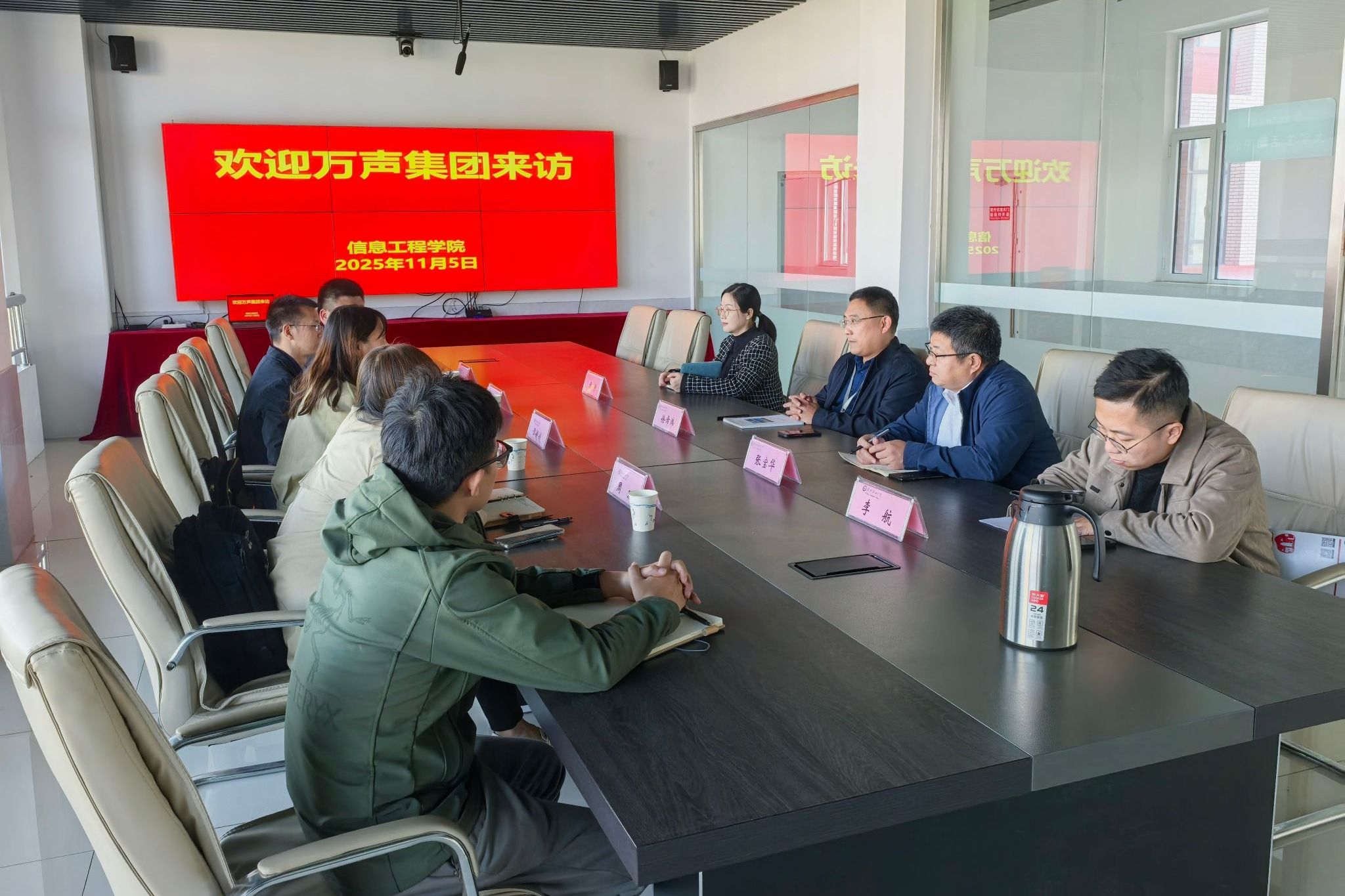 11月5日下午,万声集团产创中心总经理谭媛媛等一行5人到信息工程学院调研交流。信息工程学院主要负责人、分管教学负责人及产学研合作办公室相关人员参加座谈。