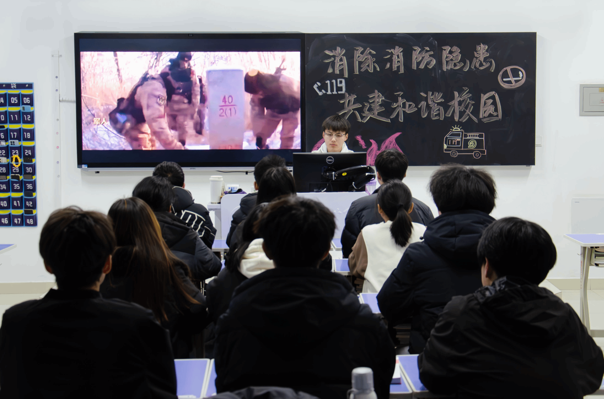 本次活动通过线上观看学习的形式开展,学生晚自习时间在教室统一观看,教师利用课余时间线上观看。公开课围绕礼堂、教学楼、宿舍等重点场所的火灾应对措施展开系统讲解。学习过程中师生们认真聆听,重点掌握了礼堂火灾发生时的安全撤离原则、教学楼火灾中的正确报警及逃生策略,以及宿舍火灾时的紧急应对措施,并进行了交流讨论。辅导员老师提醒同学们敲响消防安全警钟,以防火为先、主动作为,从日常细节做起,齐心协力,共同营造“安全第一、消防为重”的校园环境,筑牢校园消防安全防线。